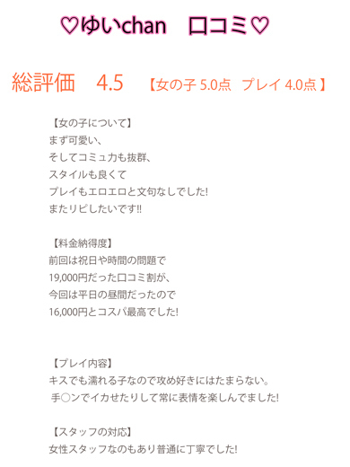 ・電マ 〇 ・ごっくん 〇 ・聖水 ×